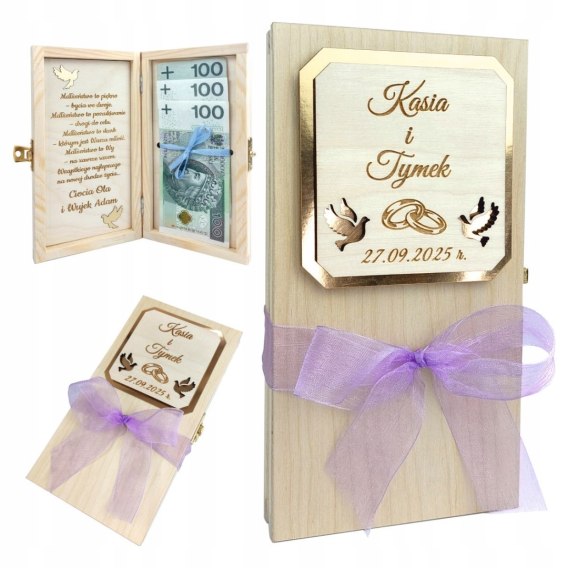 To pudełeczko to doskonały sposób na wręczenie pieniędzy w oryginalnej, estetycznej formie. Zamiast zwykłej koperty – wyjątkowy prezent, który Para Młoda z przyjemnością zachowa na pamiątkę tego pięknego dnia.