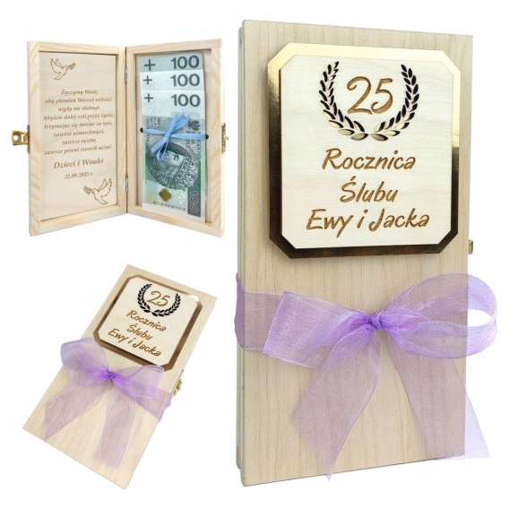 To pudełeczko to doskonały sposób na wręczenie pieniędzy w oryginalnej, estetycznej formie. Zamiast zwykłej koperty – wyjątkowy prezent, który jubilaci z przyjemnością zachowają na pamiątkę tego pięknego dnia.