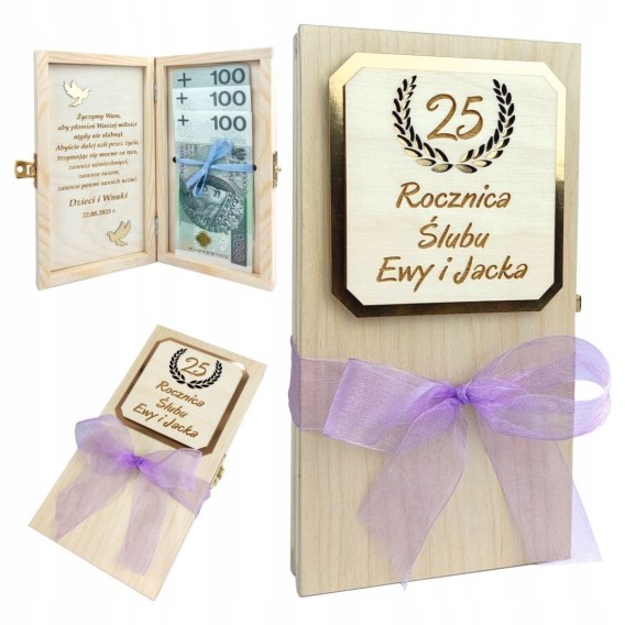 To pudełeczko to doskonały sposób na wręczenie pieniędzy w oryginalnej, estetycznej formie. Zamiast zwykłej koperty – wyjątkowy prezent, który jubilaci z przyjemnością zachowają na pamiątkę tego pięknego dnia.