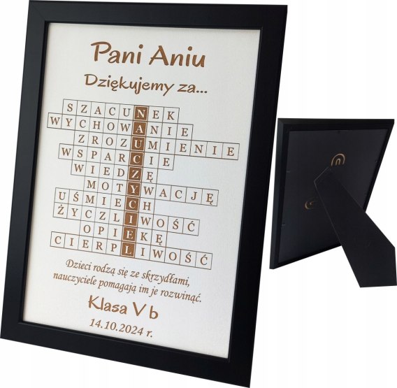 Chcesz podziękować nauczycielowi w wyjątkowy sposób? Ta elegancka, wysokiej jakości ramka A4 z grawerowaną krzyżówką to oryginalny i wzruszający prezent, który na długo zostanie w pamięci!