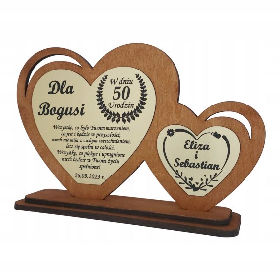 • piękną dużą bejcowaną statuetkę z podwójnym sercem