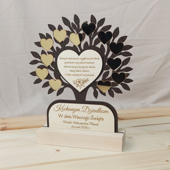 Statuetka Drzewko dla Babci i Dziadka Prezent Personalizacja Grawer Złoty